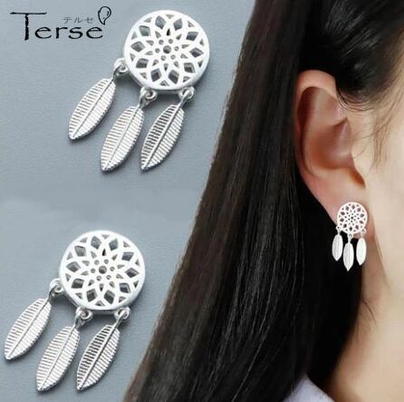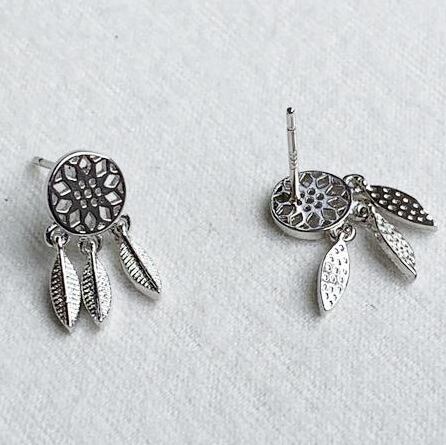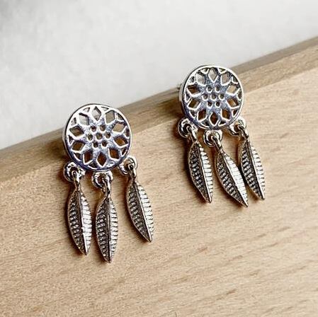 Terse☆シルバー925ピアス 羽根モチーフ ドリームキャッチャー インディアンを思わせるクールなデザインピアス 魔よけのお守りとして大切な役割を果たしていたとも言われています。☆Unisex☆個性的で存在感のあるピアスです♪ sa0010a