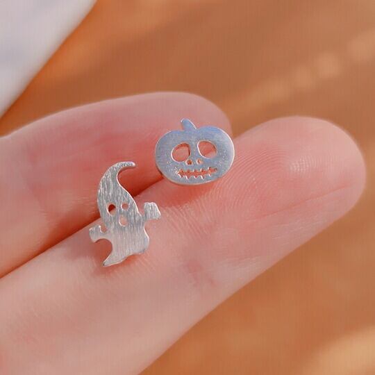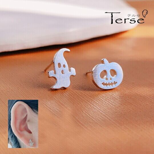Terse☆シルバー925 ハロウィン にぴったり♪可愛いおばけピアス 幽霊とかぼちゃピアス遊び心くすぐる小さくてキュートなデザインだけど存在感抜群!☆お友達や仲間とのお揃いコーデにも◎ SA0012A