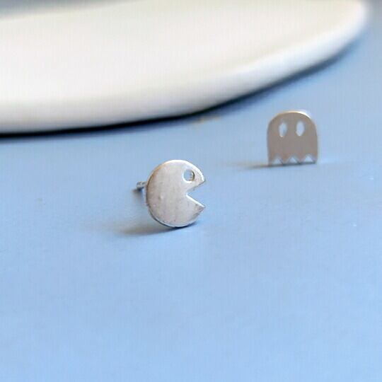 Terse S925 パックマン!80年代の大人気ゲーム◇パックマンのピアス 1ペア かわいいパックマン&敵キャラのゴーストがとっても楽しい♪左右非対称 アシンメトリー 男女兼用 プレゼント ハロウィン 普段使い お出かけ
