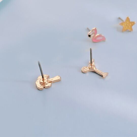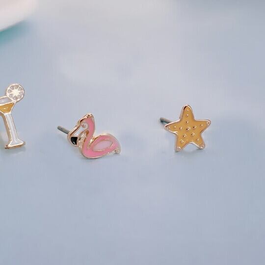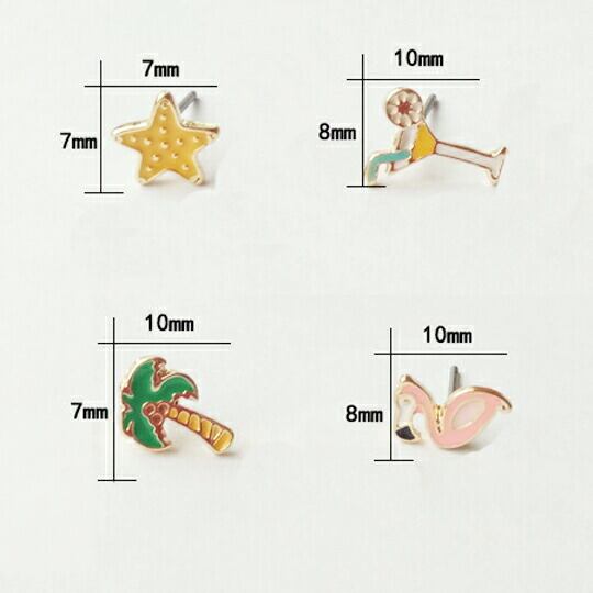 Terse 夏にぴったり☆カラフル エナメル ピアス レディース お得なセット売り (4点入) フラミンゴ やしの木 ジュース スター 鳥 動物 アニマル ドリンク 星 キュート サマー 人気 お出かけ イベント パーティー デート 普段使い リゾート