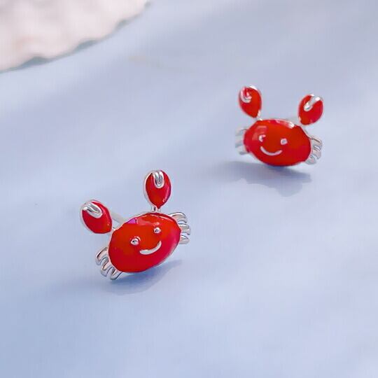 Terse お出かけが楽しくなる♪にっこりカニさんピアス 1ペア レディース 赤 レッド エナメル 面白い ユニーク 夏 サマー 海 動物 浜辺 海水浴 キュート 蟹 星座 かに座 誕生日 人気 イベント パーティー デート 普段使い リゾート sa0112as