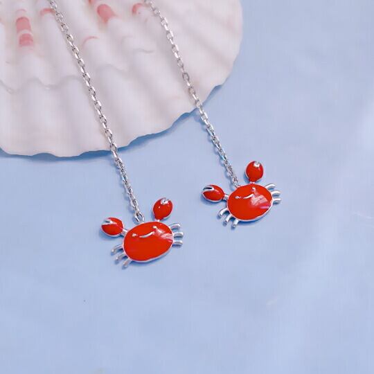 Terse 細見えロングチェーン☆お出かけが楽しくなる♪にっこりカニさんピアス 1ペア レディース 赤 レッド エナメル 面白い ユニーク 夏 サマー 海 浜辺 キュート 蟹 星座 かに座 誕生日 人気 イベント パーティー デート アメリカンピアス リゾート sa0128as