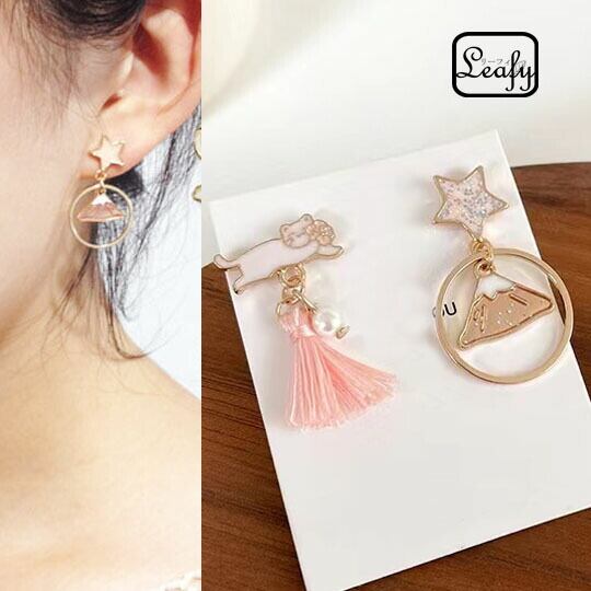 Leafy かわいくて楽しいアイテムがいっぱい☆和風ピアス 淡いサクラカラーで優しい雰囲気を演出 レディース 1ペア スター さくら 猫ちゃん お出かけ デート お呼ばれ パーティー 食事会 女子会 普段使い プレゼント 浴衣 着物 花火大会 sa0131apk