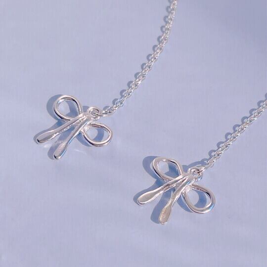 Terseシンプルなのに可愛いリボンのチェーンピアス 1ペア レディース ロング シルバーカラーで甘すぎないお洒落が楽しめる 大人女子 ゆれ感 スウィング お出かけ イベント パーティー デート 普段使い ゆらゆら シルバー925 se0212a