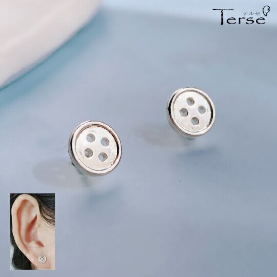 Terse シンプルなシルバーボタンのピアス 1ペア レディース メンズ ユニセックス ファッション 服 おしゃれ着 手芸 裁縫 ソーイング 普段使い お出かけ デート プレゼント se0239a
