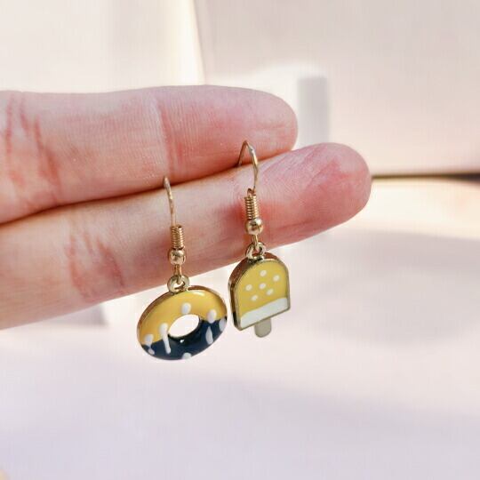 Terse お出かけが楽しくなる♪ドーナツとアイスの甘〜いスイーツピアス レモンソースとチョコがかかったぷっくり可愛いアクセサリー 1ペア レディース 面白い お出かけ デート お呼ばれ パーティー 普段使い プレゼント se0240a