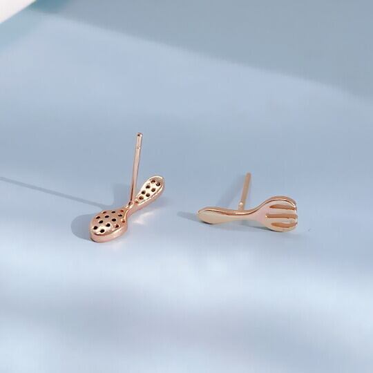 Terseミニチュアな贅沢なCZダイヤ フォーク&スプーンピアス 子供のときに遊んだ、お人形が使うおもちゃの食器セットにあったような小さなスプーンとフォークをアクセサリーに 匙は幸せという意味が込められています 小さいピアスse0284ag