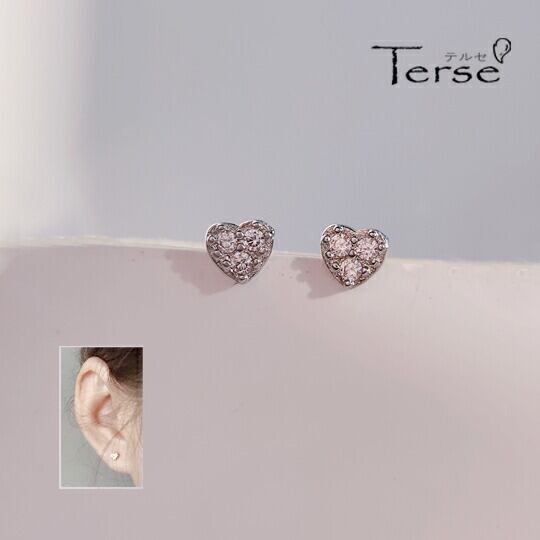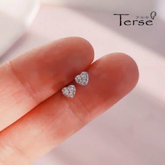 Terse ハートをモチーフにしたロマンティックでクラシックなミニピアス 小さいぶり きらめくCZダイヤが見事な輝きを放ち、エレガントな印象を与えます キュービックジルコ レディース アクセサリー オンオフ問わず 普段使い 重ねづけ 組み合わせも バレンタインse0285as