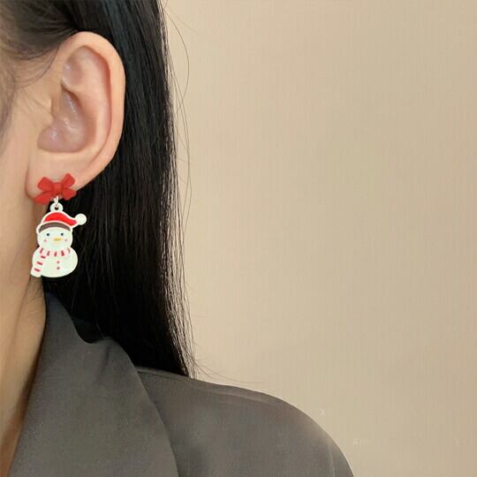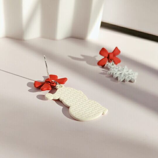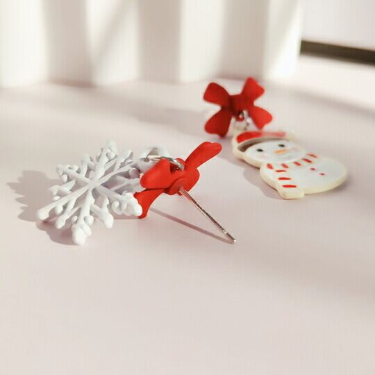 Terse冬の季節にぴったりな雪だるまと雪の結晶のアシストピアス 赤いリボンがアクセントとなり、クリスマスの雰囲気を一層引き立てます 冬の装いに華やかさをプラスし、特別な日を彩るアイテムとして最適 シンプルながらも個性的なデザイン ウィンター se0340a
