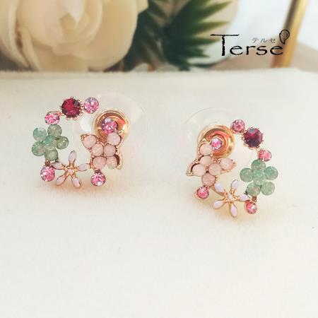 Terse フェミニンなフラワーリースピアス 1ペア グリーン レディース 花 ブーケ 蝶 バタフライ スプリング 楽しい 可愛い 華やか 輝き お出かけ イベント デート 二次会 お呼ばれ パーティー 普段使い プレゼント 春 sp0130agr