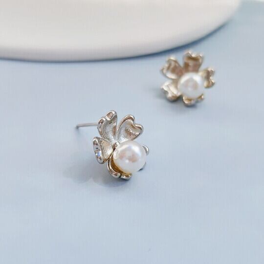 Terse パールがついたフラワーピアス 1ペア レディース 落ち着いたシルバーカラーで大人女子にぴったり 浴衣等の和装にも 花 清楚 涼しげ 和風 着物 お出かけ イベント デート 二次会 パーティー 普段使い プレゼント 冠婚葬祭 sp0152a 10月誕生花
