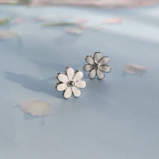 Terse ちょっとしたお出かけから、きちんと装いたい場面までシーンを問わずに愛用できるシンプルでエレガントな白いお花スタッズピアス 艶めくエナメルのスペードホワイトフラワーと輝くシルバーメタルのコンビネーションが耳元でリッチな存在感を放ちます sp0215a