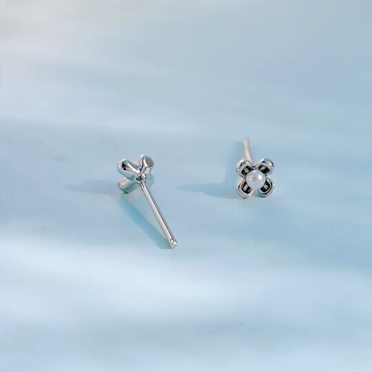 Terse 耳元に可憐な花が咲いたような可愛らしいミニピアス 真ん中のベビーパールが印象的なシンプルなフラワーピアスになり さりげなく光り輝くので普段着けしやすい フラワーモチーフは、「幸せ」「愛情」「美」「喜び」を意味するラッキーモチーフ シルバーsp0216as