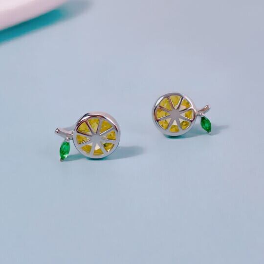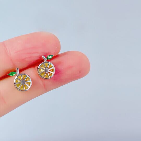 Terse 身につければハッピーな気分になれる輪切レモンモチーフキュービックジルコニアピアス 甘酸っぱい フレッシュなレモンが爽やかな印象を与えてくれます 涼やかさとビタミンカラーで元気に過ごせそう夏らしい軽やかな服装に合わせるとレモンがより引き立ちますsp0222