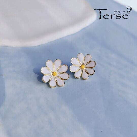Terse 耳もとをロマンチックに彩る、人気のディジーモチーフエナメルピアス 程よいサイズが取り入れやすく、デイリーに活躍するアイテム デイジー(雛菊・ヒナギク)の花言葉は「純潔」「美人」「平和」「希望」 可愛いフラワーピアス お花 マーガレット sp0230a