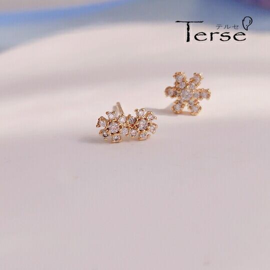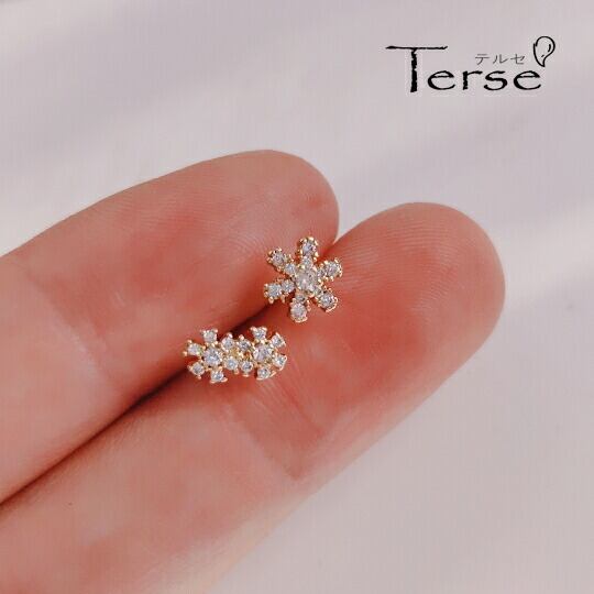 Terse フラワーモチーフのCZダイヤモンドピアス 一輪と二輪のフラワーのアシンメトリーピアス 左右非対称 ラウンドカットのキュービックジルコニアは上品かつ繊細な印象のフラワーモチーフに仕上がりました エレガントな雰囲気のアシンメトリーなピアス sp0231a