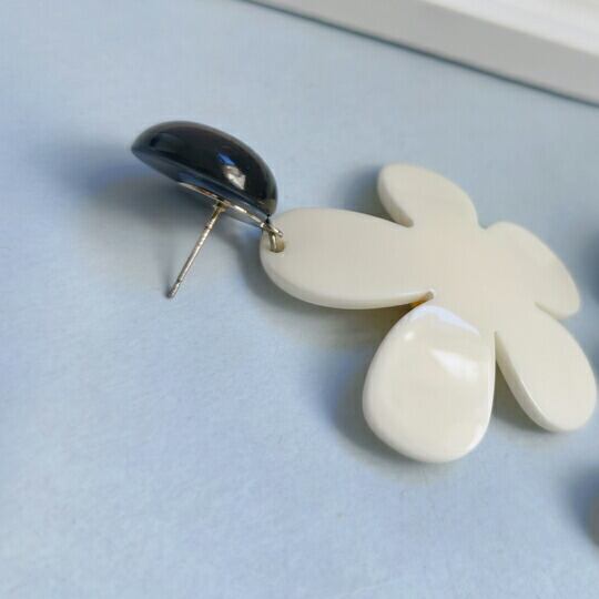 Terse 存在感のある大振りホワイトフラワーピアス インパクトのデザインでデイリーコーデのアクセントに 耳元にパッと明るくプルメリア花が咲くポップな耳飾り 大きなお花が楽しげに揺れるタイプは、着けていると元気が出る アクリル樹脂 軽いのもうれしい sp0233a