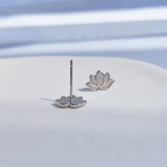 Terse 涼しげな雰囲気が美しい睡蓮は水面に浮かぶ白の花が咲いている模様をインスパイアされた蓮の花ピアス シンプルだけど繊細なだデザイン 小さいながらも耳元をキラリと上品に演出 花言葉は「信仰」「清純な心」「信頼」「甘美」「優しさ」はすの花ピアス sp0237a