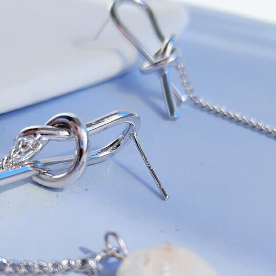 Leafy 遊び心ある結び目チェーンピアス シルバー 1ペア レディース 大振り リゾート ロング スウィング ゆらゆら感 ラウンド シェルパーツ お出かけ イベント パーティー 二次会 食事会 女子会 デート 普段使い 貝殻 sr00800ys