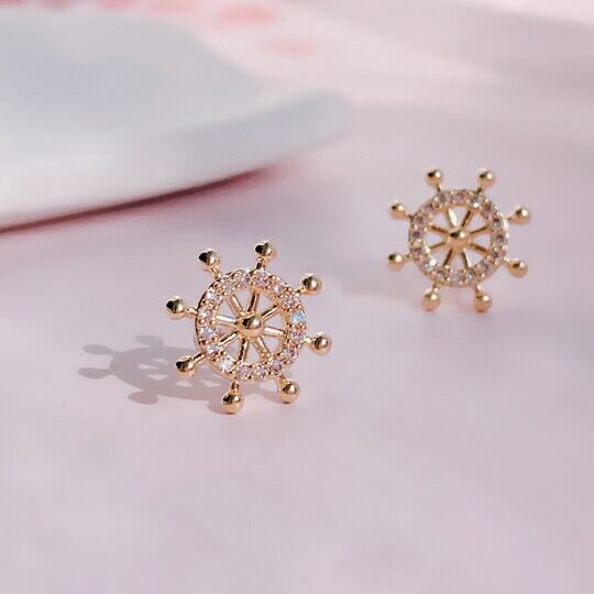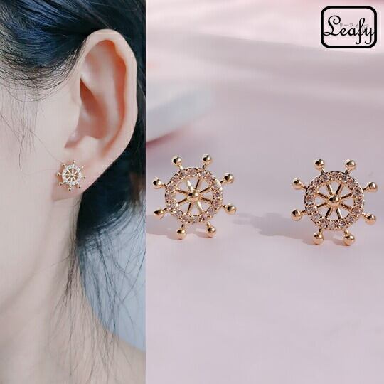 LeafyキュートなCZダイヤカジ モチーフ ピアス 夏にぴったり 小ぶりだけど精巧なつくりキュート 繊細 ゴールド ペア売り シンプル・カジュアル・普段使い・オフィス・自分らしさ☆お出かけコーデにも リゾート舵 sr01308yg 14KGP ゴールドメッキ
