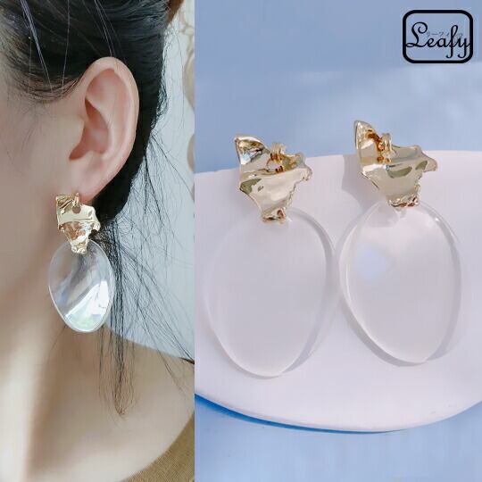 Leafy ゴールドカラーの遊び心あるメタル感満載大振りピアス 洗練されたモダンなデザイン 1ペア 鏡面仕上げ お出かけ イベント デート 二次会 お呼ばれ パーティー 普段使い プレゼント 浴衣 着物 花火大会 夏祭り sr01404y