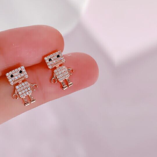 Leafy 可愛いロボットピアス オシャレな女性の中でひそかにブームになっているロボットモチーフ ロボットの目とボディーにCZダイヤをぎっしり詰め込んで、とってもキュートなロボットアクセサリーが出来上がりました♪プレゼント sr02276ypg 母の日