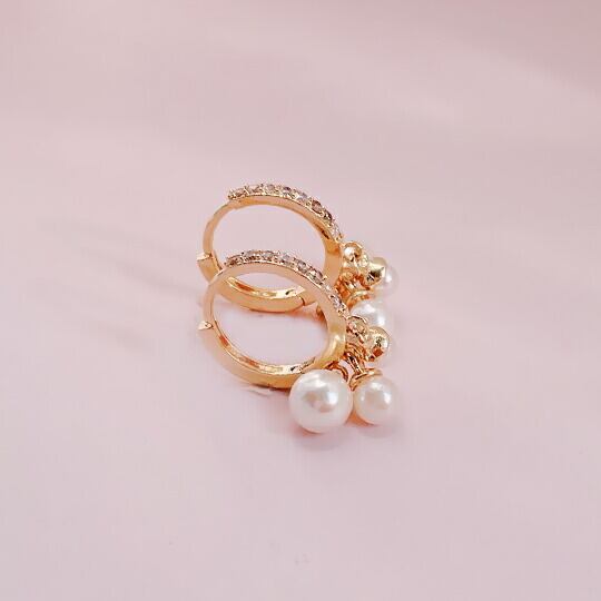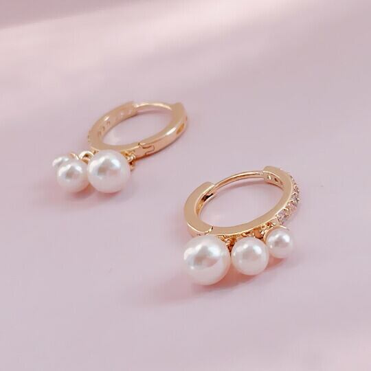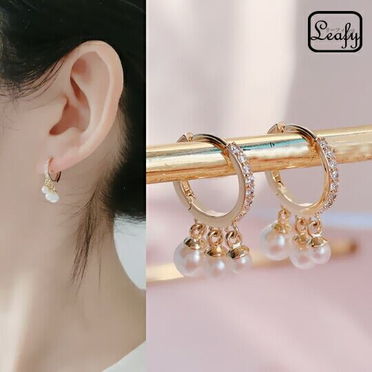Terse ゆらゆら3粒パール&高級なキュービックジルコニアがフェミニンなトレンド感のあるフレンチピアス 大きさの異なるパールをフープ状にセッティングした遊び心のあるデザインが目を引きます 上品な印象で、長くお使いいただけます プレゼント 贈り物 sr03917a