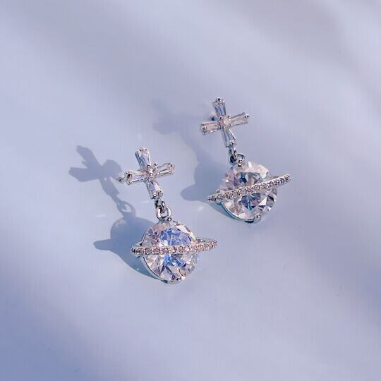 Leafy 上品かつ可愛い大人の星空CZダイヤドロップピアス 顔回りに華やかさをプラスしてくれます 色々な服装に合わせやすいデザインですので、これひとつでも、お手持ちのジュエリーと合わせてもまた違った表情を楽しめる万能アイテム 宇宙 sr04120ys