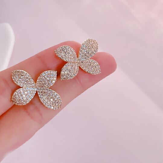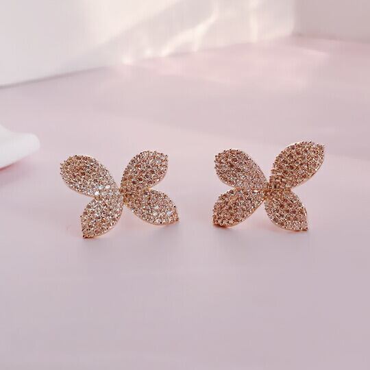 Leafy ラウンドシェイプCZダイヤを敷き詰め、フラワー形に仕上げたピアス シンプルなデザインながらも美しい輝きが耳元で存在感を発揮 甘くなりがちなフラワーモチーフを大人顔にするのはパヴェの輝きだからこそ 柔らかい花びらを華やかな存在感をプラス sr04558y