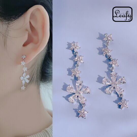 Leafy 顔周りにエレガントな印象を演出するモチーフを、日差しの季節に映える贅沢なダイヤ使いで 向きを変えながら配した5輪のフラワーモチーフが耳に沿うデザイン ゴールド色とCZダイヤがよりピュアな輝きを放ちます ギフト 花 sr05601ys