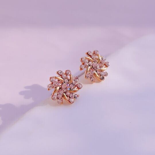 Leafy 巻き風ピアス キラキラストーン スタイリッシュなデザインが耳元をお洒落に演出♪ カジュアルにもフォーマルにも♪オールシーズンどんな場面でも活躍できます!ゴールド/トパーズ色【定形外・メール便対応】プレゼントにも