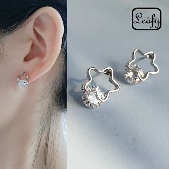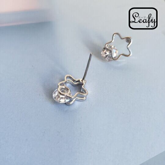 Leafy大人の可愛いジルコニア&透かし花 フラワー/星モチーフジルコニア ストーンピアス デザインピアス 主張しすぎない大きさのCZダイヤなのでオフィスにもデイリーコーデにもパーティーにもオールシーズン大活躍のマストアイテム♪x02316as【ペア】☆