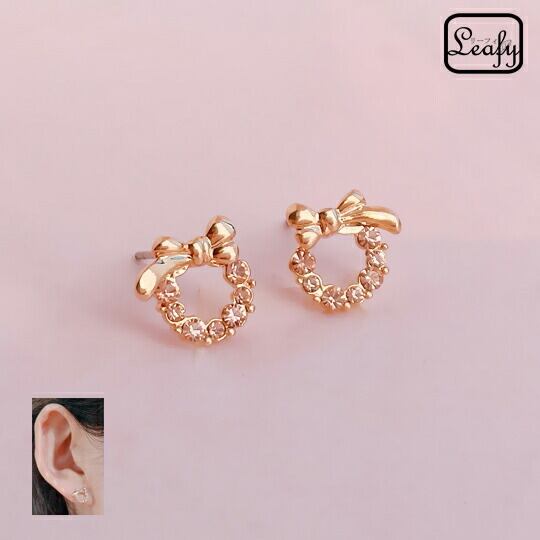 Leafy 可愛いをいっぱい詰め込んだ♪キュートなぷっくりリボンピアス♪ キラキラエレガント☆ ゴールド/トパーズ色(golden with amber stone color)【定形外・メール便対応】 成人祝い 内祝い 進学祝い 就職祝い