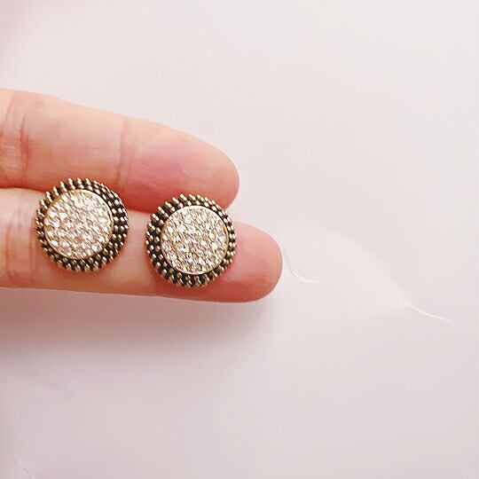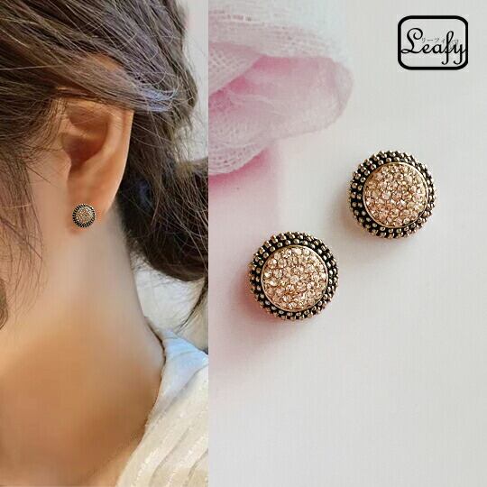 Leafy 高級感あふれるキラキラ/贅沢な輝きのラインストーンをちりばめ耳元をエレガントに演出してくれる円形デザインピアス☆結婚式/フォーマル/二次会/パーティー/セレモニー x03479c ゴールド/トパーズ色(golden with amber stone color)