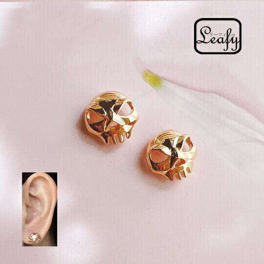 Leafy スカルピアス 出っ歯スカル/髑髏 ゴールド(gold) ハロウィンにも♪仮装パーティー♪ ハロウィンx03839ag ハロウィン 贈り物 ご褒美 自分用 メンズ レディース ユニクス