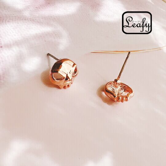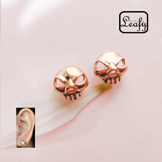 Leafy スカルピアス スカル/髑髏 インパクト抜群のスカルは毎日のコーデに個性をプラスしてくれるアイテム ロックなコーデにはもちろん甘めのコーデにも◎ お肌に優しいピンクゴールド ハロウィン x03839a-pink gold ハロウィン