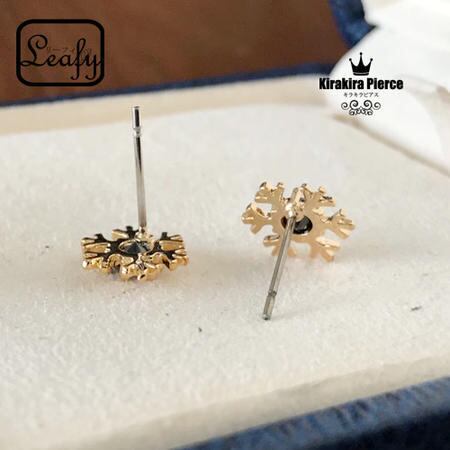 Leafy☆キラキラ一粒ジルコニアピアス☆CZ雪の結晶☆ゴールド/ブラック (gold/black stone) これからの季節に♪クリスマスやパーティにも♪デートや女子会に♪エレガントで高貴な輝きを耳元に♪【【定形外・メール便対応】☆アナと雪の女王 x04128bgb