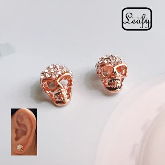 Leafyキラキラストーン付きスカルモチーフピアス オリジナルデザイン/髑髏 ハロウィンにも 繊細なつくり エレガントな印象を与えます ラインストーンをあしらったユニークなデザインのスカルスタッドピアス 仮装パーティー♪普段使い 小さい x04221apg