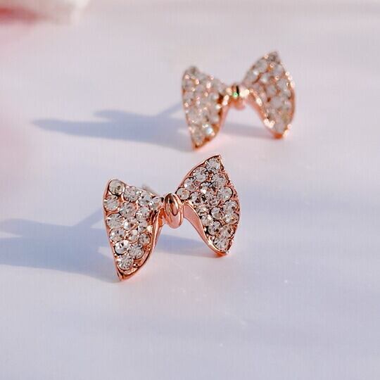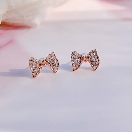 Leafy♪女の子の永遠の定番キラキララインストーン☆リボンモチーフピアス☆大人可愛いナチュラル お上品なデザインなのでフォーマルの場にふさわしい1つは持っておきたいマストイテムです☆ x04059a-pg ピンクゴールド pink gold