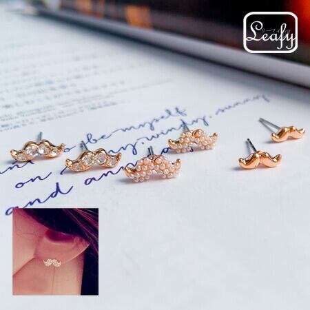 Leafy☆ お洒落さん必見!!キラキラ可愛い人気の可愛いひげピアス/ヒゲモチーフピアス 小さいぶりピアス【3ペア】♪個性的でお目立ち抜群アイテム♪ゴールド(gold)x04599apg