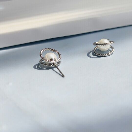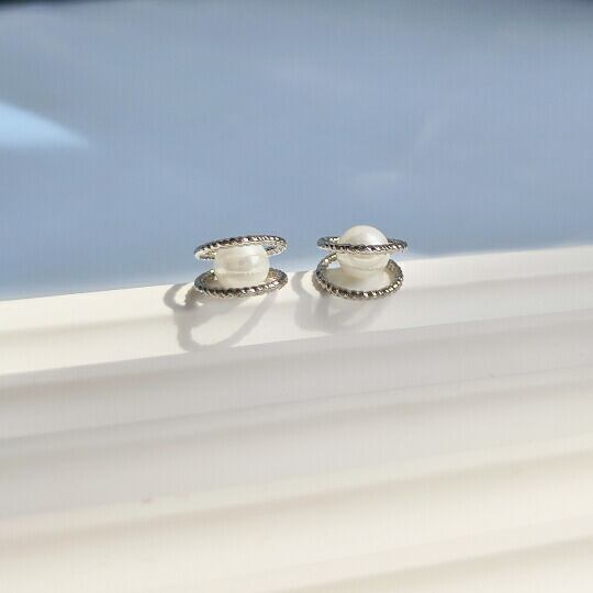 Leafy 真珠/フェイクパールピアス シンプル モデン デザインピアス ヨコから立体感たっぷり シルバー (Silver) x04733a-silver 6月誕生石 冠婚葬祭 入園式 入学式 卒業式 卒園式