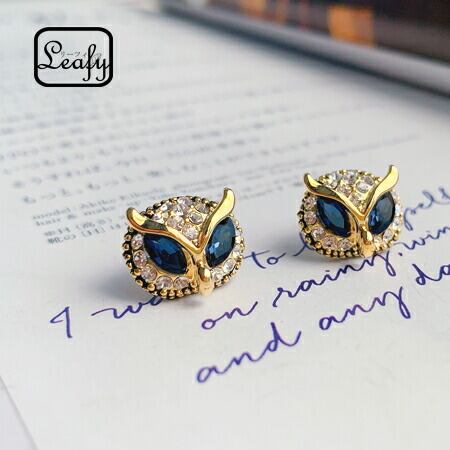 Leafy ☆☆知恵や知識のシンボルとして、また幸せを呼ぶ鳥として人気の高いフクロウのモチーフ ピアス♪ Blue eyes キラキラジルコニア♪高貴でエレガントな輝きを耳元に☆キラキララインストーン♪ゴールド(gold)x04880a-gold