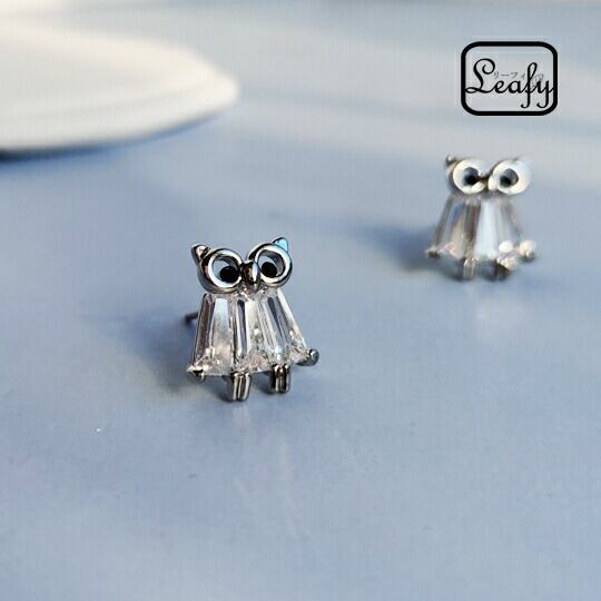 Leafyお正月に縁起の良い 動物 福朗 透明度高いのジルコニアでデザインしたふくろうモチーフピアス/ふくろうは縁起が良いといわれ、開運・紹運・商売繁盛など、たくさんの幸せを運んでくれます♪ 梟モチーフ シルバー x05175a-silver