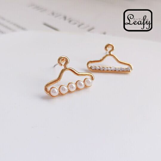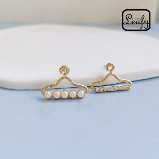 Leafy 可愛いハンガー型ピアス 真珠/フェイクパール ピンクゴールドx05327agハンガーの三角形は「拡大・成長」などの良い意味を表しています♪パール&キラキラでファッションコーデの幅もグンと広がります♪☆左右非対称☆ゴールド(gold) 冠婚葬祭 入園式 入学式