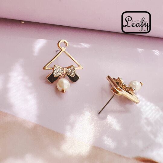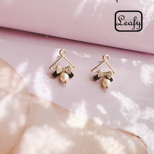 Leafy 可愛い揺ら揺らミニハンガー&リボンパールピアスキラキラストーン 冠婚葬祭 入園式 入学式 卒業式 卒園式 x05456a-gold/black ゴールド/ブラック色