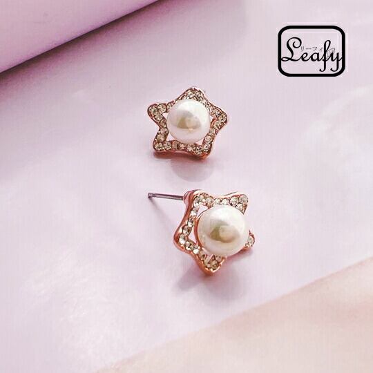 Leafy真珠/フェイクパール 星 ピアス 【定形外・メール便対応】 6月誕生石 ご褒美 自分用 旅行 パーティー イベント デート ディナー お出かけ 誕生日 卒業式 入学式 入園式 卒園式 結婚祝い ピンクゴールド 冠婚葬祭 入園式 入学式 (pink gold) x05484a-pink gold