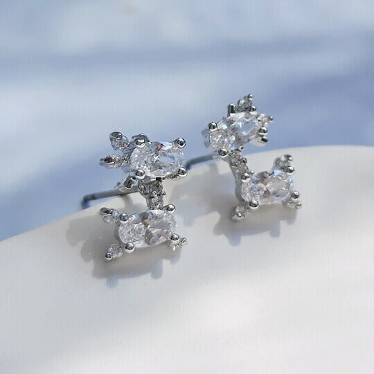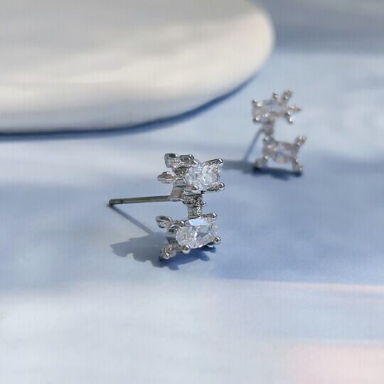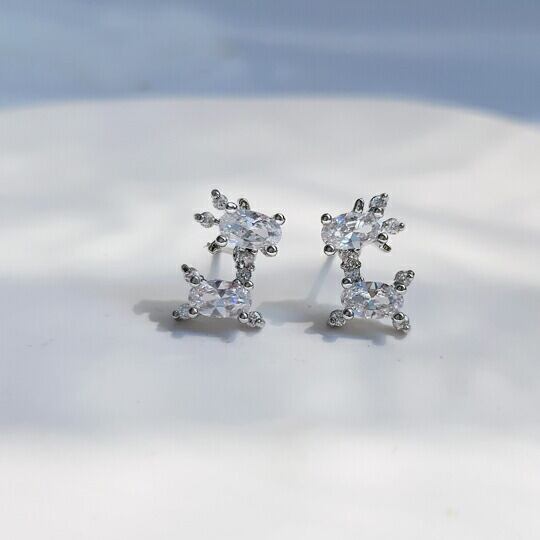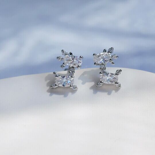Leafyキラキラジルコニアの立体的な可愛い子鹿さんモチーフピアス CZダイヤ クリスマス トナカイ ピアス x05705as