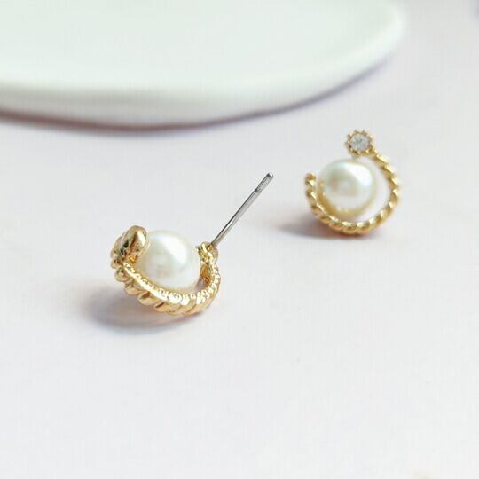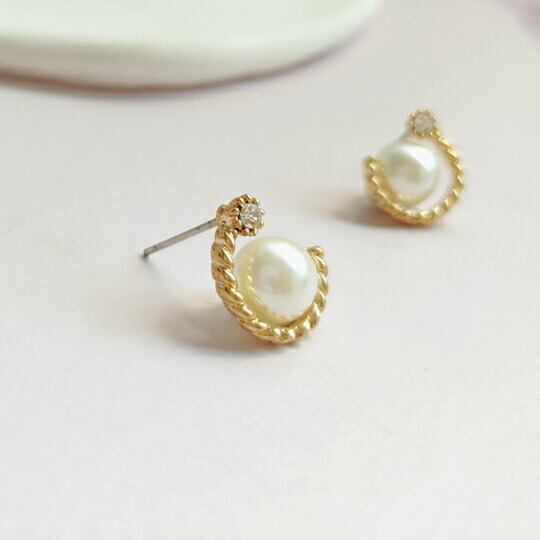 Leafy☆ダイナミックな波をモチーフにしたフェイクパールピアス。真珠の美しさをモダンなデザインが際立たせます。耳をエレガントに優しく包み込む、らせん状のシルエットに仕上げました。フォーマルにも◎ x06929a-gold ゴールド(gold)6月誕生石