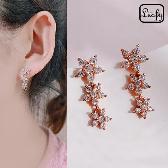 Leafy キラキラジルコニアフラワー三輪の優しく揺れるピアスミックス クラスタードロップ ピアスあしらった花びらがの上で可憐に輝きます x07687apg 誕生日プレゼント ホワイトデー お返し