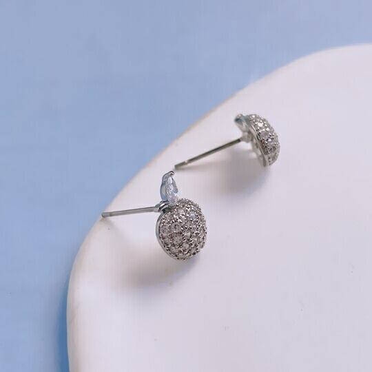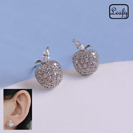 Leafy キラキラりんごモチーフジルコニアピアス 可愛いリンゴが耳元をキュートに飾ってくれます。ガーリーなファッショやお出かけコーデにももちろん、デイリーにも幅広く使えるアイテムです☆CZダイヤ 果物 x07741a-Silver